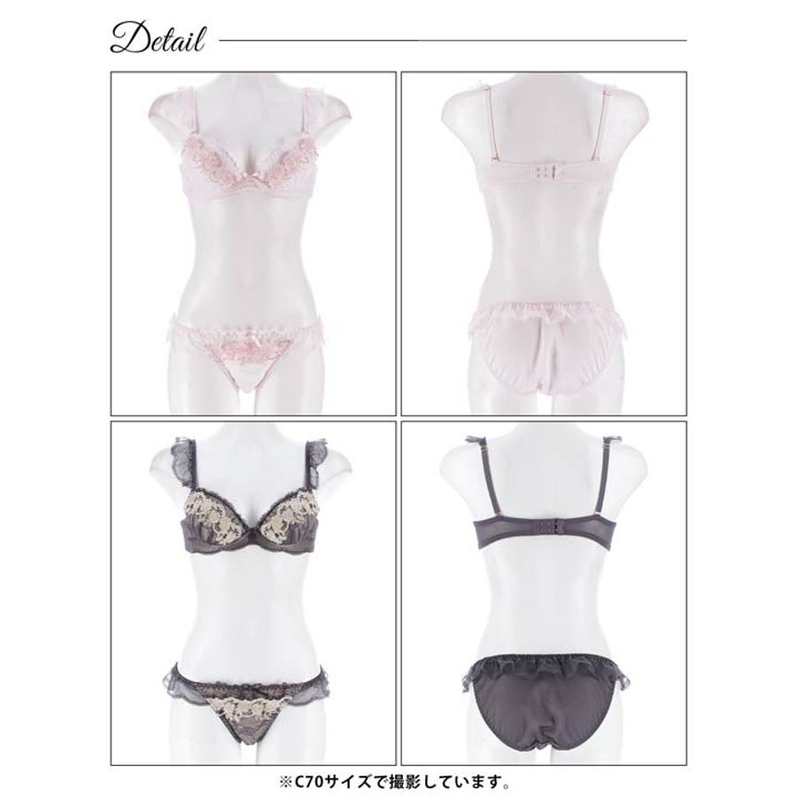 肩や腰まわりを飾る軽やかなレースフリルがロマンティックなムードを演出♪従来よりも柔らかいワイヤーを使用しているので痛くなりにくい設計になっています。
