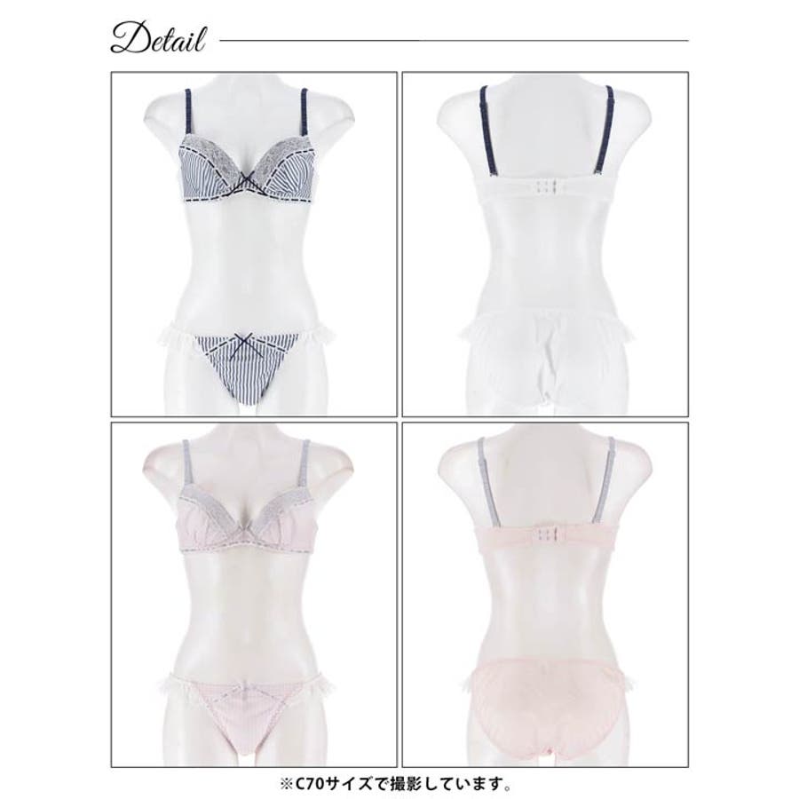 ストライプ柄×レースの組み合わせがガーリーな雰囲気を演出するランジェリー。