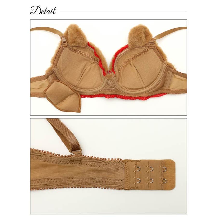 テディベアをイメージしたのランジェリー。カップ上辺にあしらわれたお耳や、ギンガムチェック柄のリボンが可愛らしさを演出♪ショーツの後ろについている取り外し可能なしっぽもポイントです!