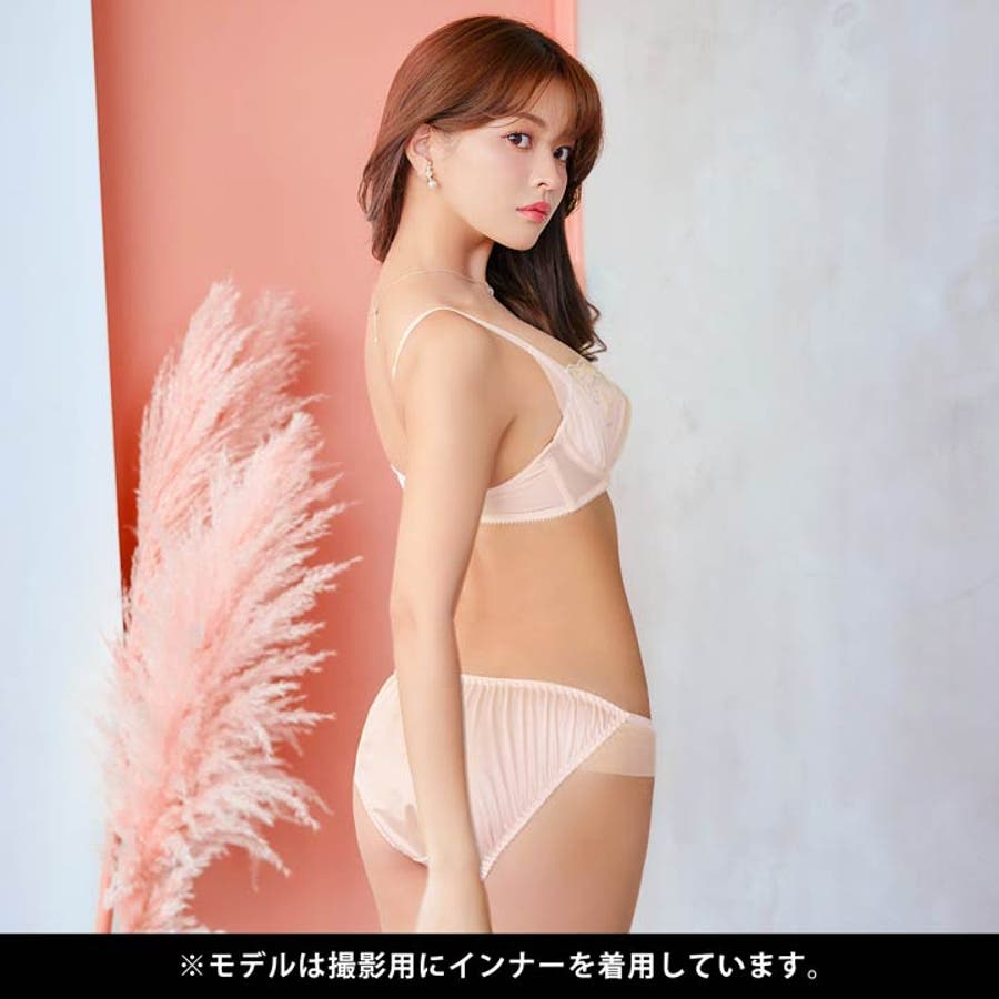 清楚感溢れるニュアンスカラーの小花柄を施したランジェリー。バストを包み込むようなチュールがボリューム感とシルエットを美しく演出します◎ ショーツサイドの肌透けが色っぽいフルバック仕様です♪