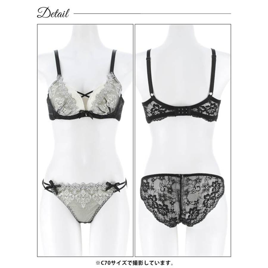 [EFサイズ]エレガントエンブロイダリー脇高ブラジャー&バック透けフルバックショ…