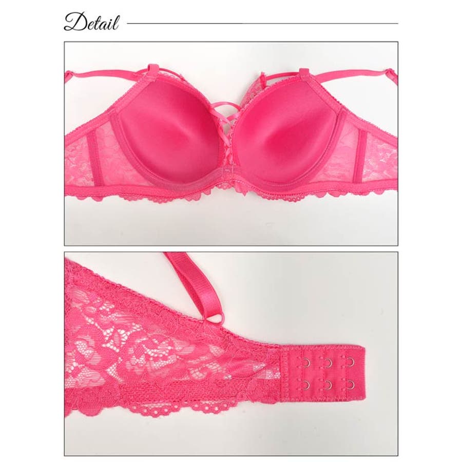 全面に施されたフラワー柄が可愛らしいランジェリー。胸元の華奢なレースアップデザインとリボンで谷間の色気を加えてくれます◎ サイドから透けるレースが程よく肌魅せ出来る1着です♪モデル…PyunA.