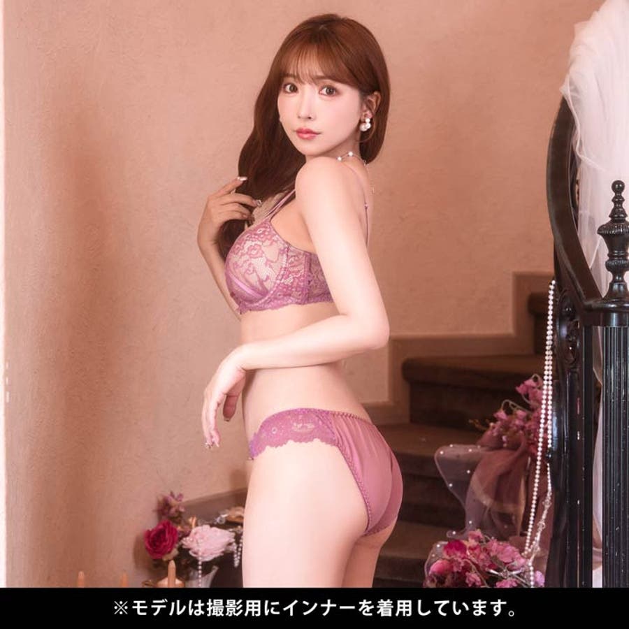 全面フラワーレース仕様と引き寄せられるような同系色のコードを重ねた色気漂うランジェリー。コードから覗く大胆な肌魅せと、リボン装飾のワンポイントが女性らしさたっぷりな1着です◎