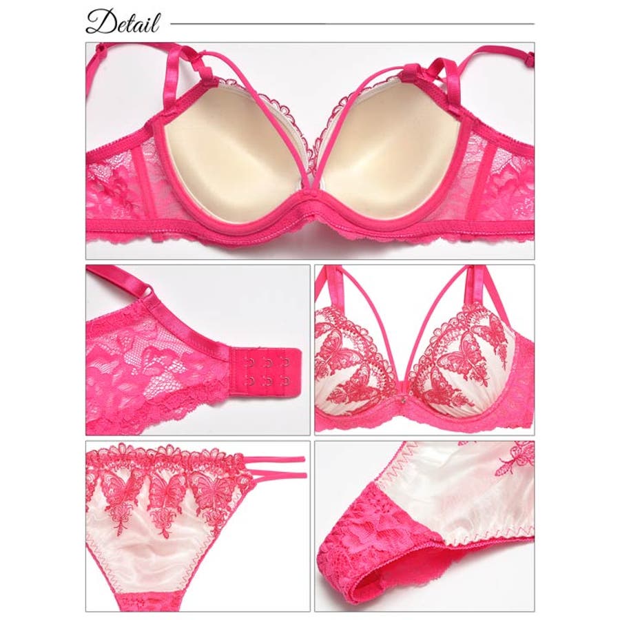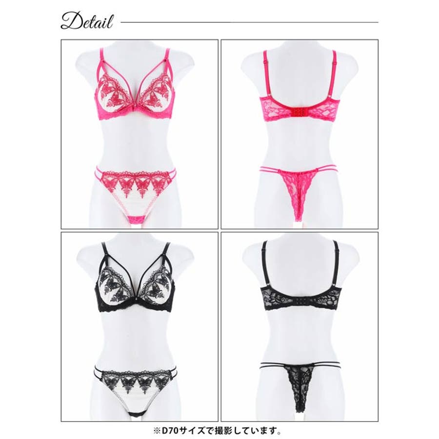 肌なじみの良い柔らかい生地に色鮮やかなダマスクモチーフのバタフライが美しいランジェリー。バストラインを綺麗に見せてくれるマカロニコードに三角ストラップを加え谷間をしっかりアピール♪ サイドや後ろ姿からも色気を欠かさないレースの透け感が女性らしい1着です◎モデル…三上悠亜