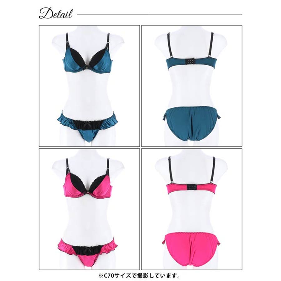 なめらかなマットサテンをふんだんに使用した大人なカラーリングのランジェリー。カップにレイヤードされたサテン生地がバストを美しく見せてくれます◎ショーツサイドにはフリルがあしらわれ腰元を可愛らしく演出できるデザインです♪