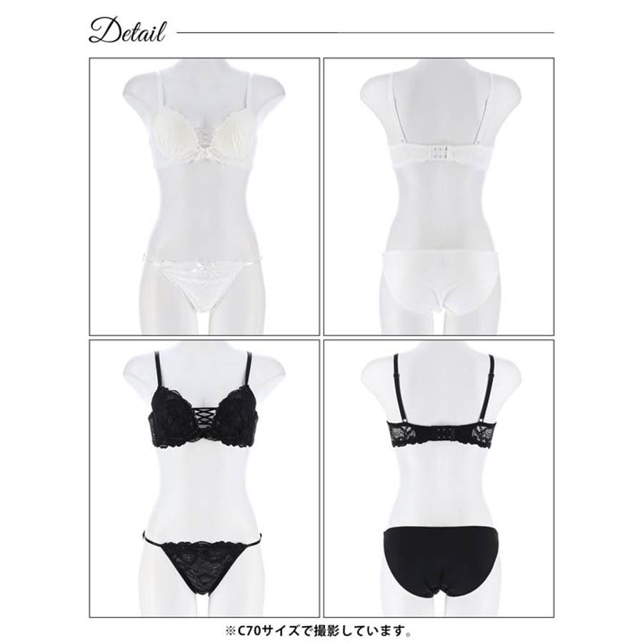 繊細なフラワーレース柄に谷間ラインを美しく強調するレースアップをあしらったランジェリー。モノトーンな2色展開のワンカラー仕様がシンプルながらも大人な女性の色気を際立たせる1着です◎モデル…PyunA.