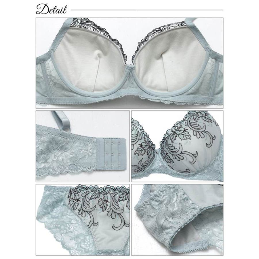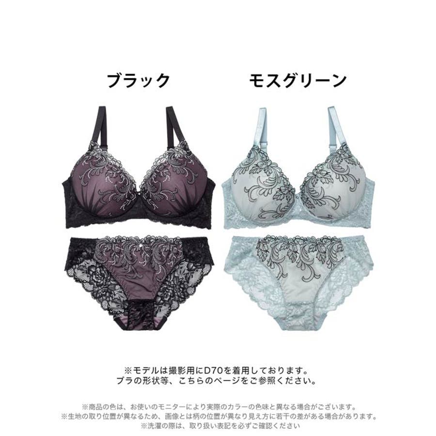 ボタニカルモチーフの刺繍をフルカップ部分まで贅沢にあしらったランジェリー。