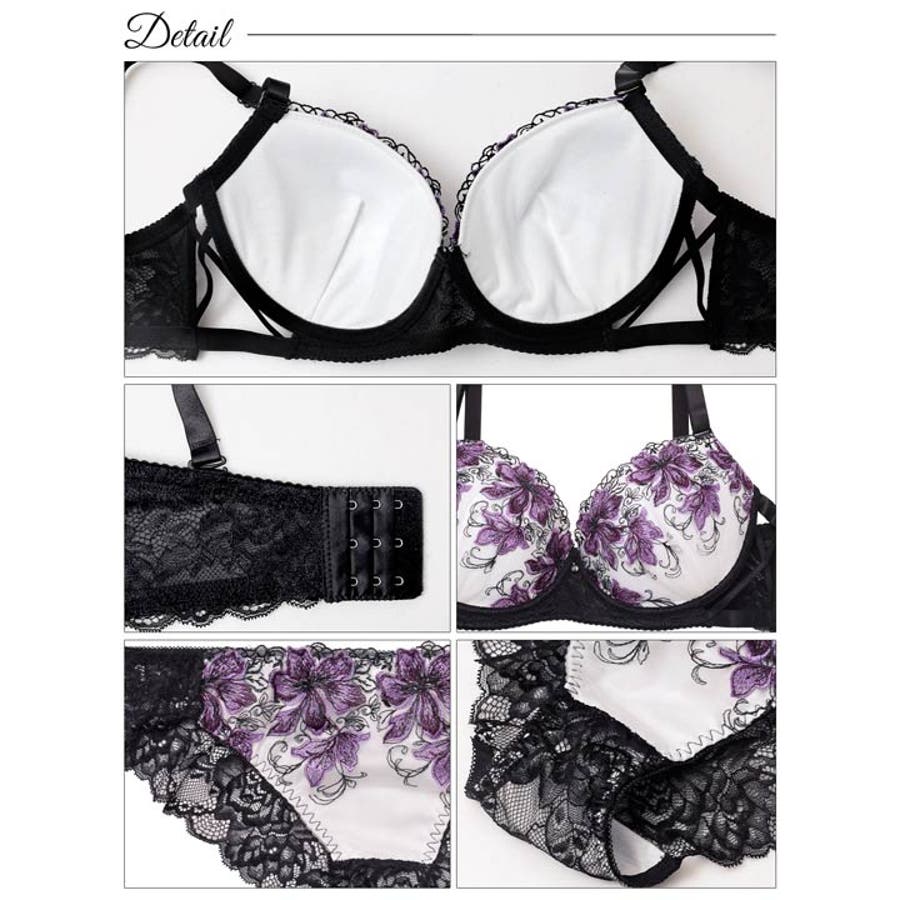 豪華に咲き誇るフラワー刺繍が胸元を華やかに彩るランジェリー。