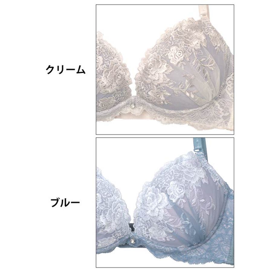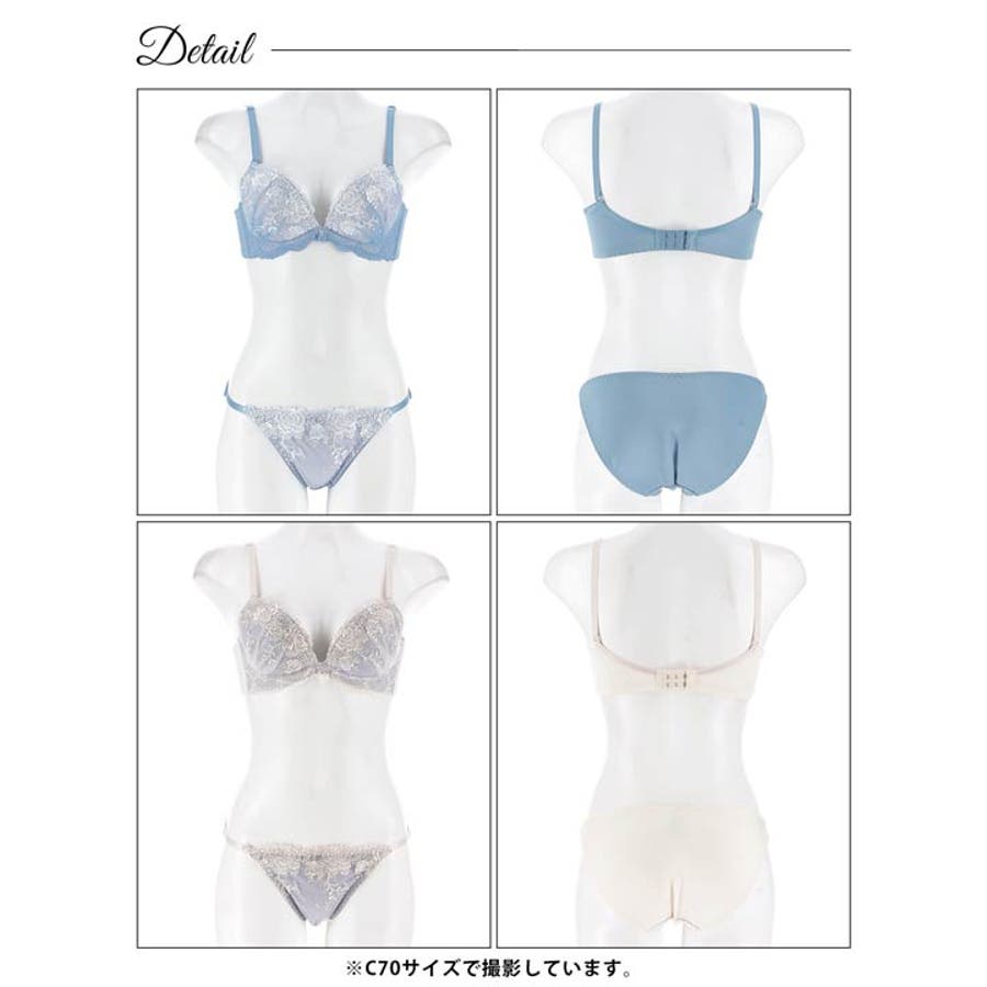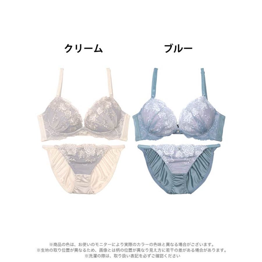 淡く儚げなローズ刺繍にダスティーブルーの透け感が美しいランジェリー。