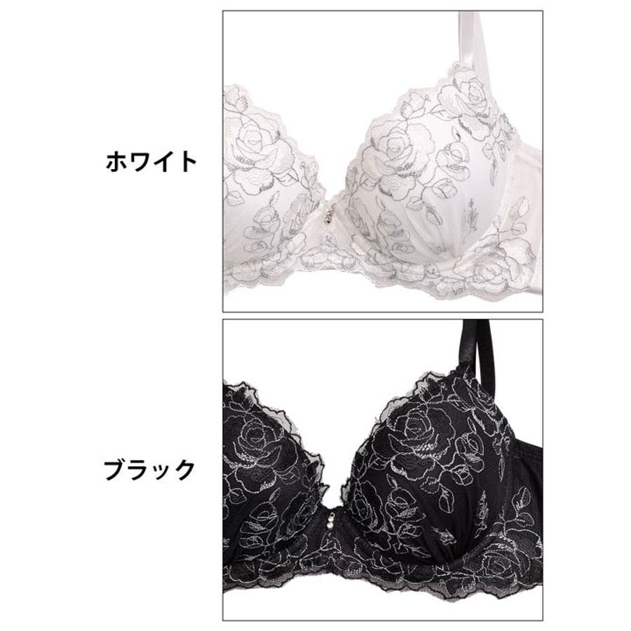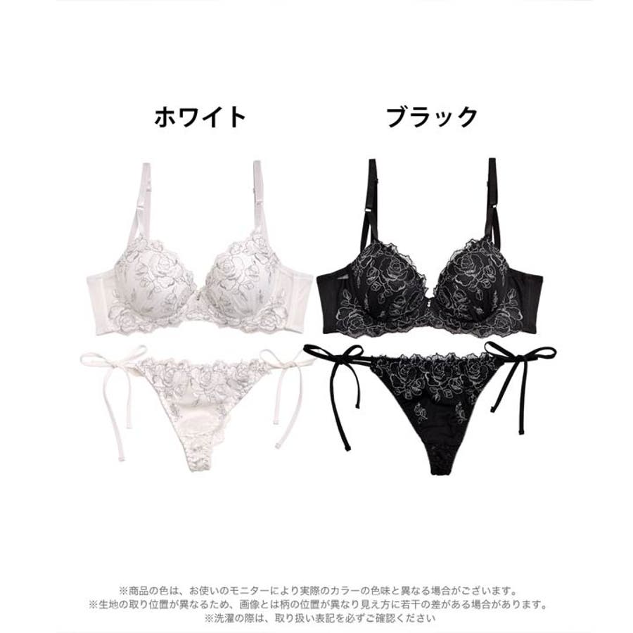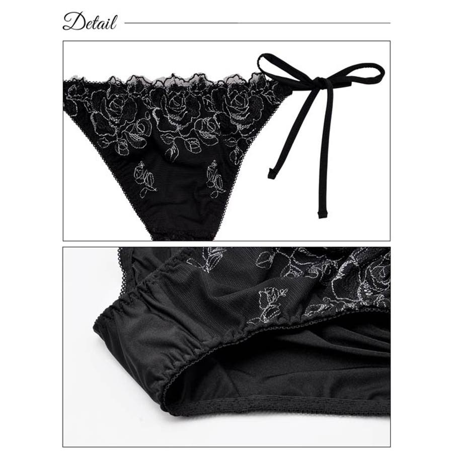 大輪のローズ刺繍が高級漂うランジェリー。中央の輝くチャームで上品さと、ショーツサイドの紐仕様が色気漂います◎ 三角ストラップで胸元もしっかり支えてくれる1着です♪モデル…田向星華