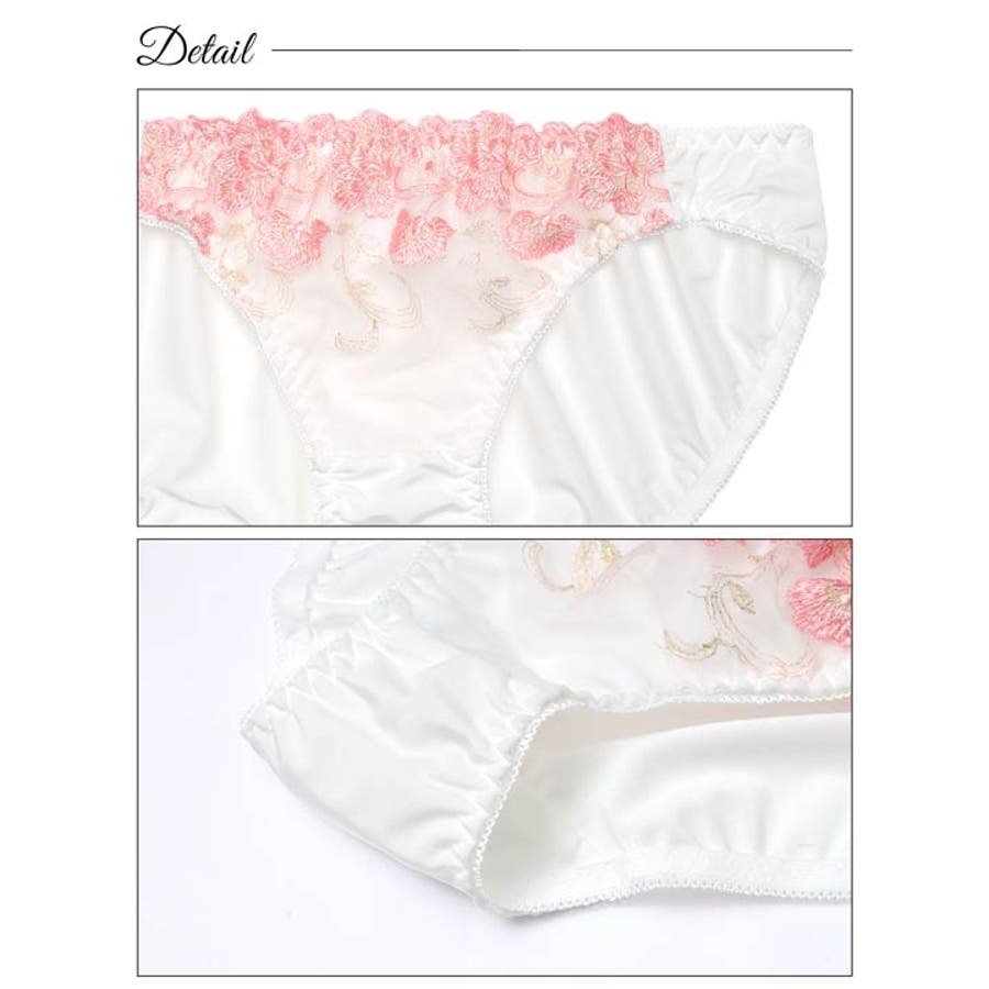 ホワイトベースのカップに映える美しいフラワー刺繍を施したフェミニンな印象のランジェリー。胸元にきらめく上品なゴールドのラインストーンチャームがアクセントになっています♪ショーツは心地よいフィット感で履き心地も快適なフルバック仕様です!