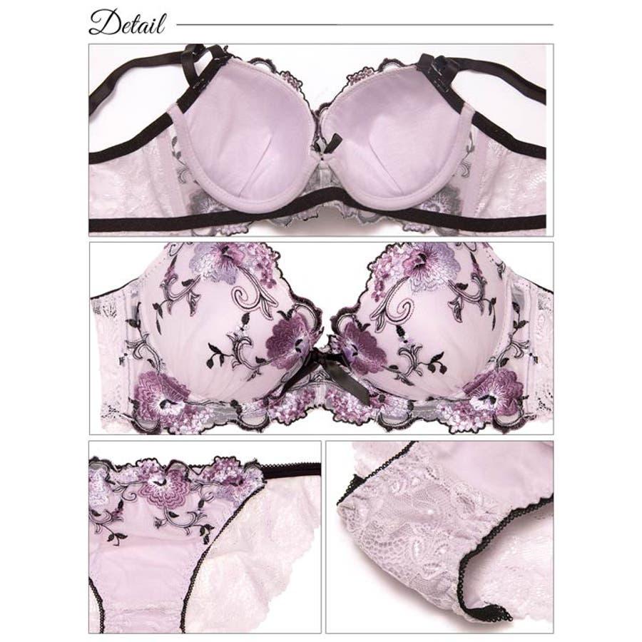華やかなフラワー刺繍に、ブラックのリボンで大人可愛い魅力をプラスしたランジェリー。