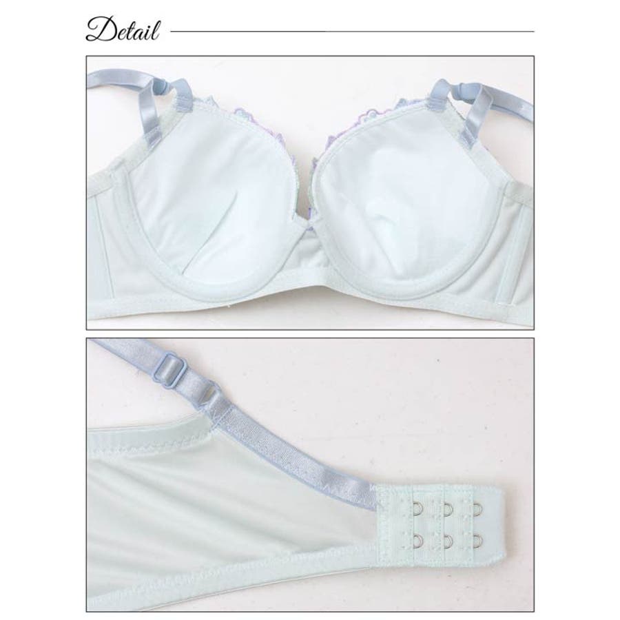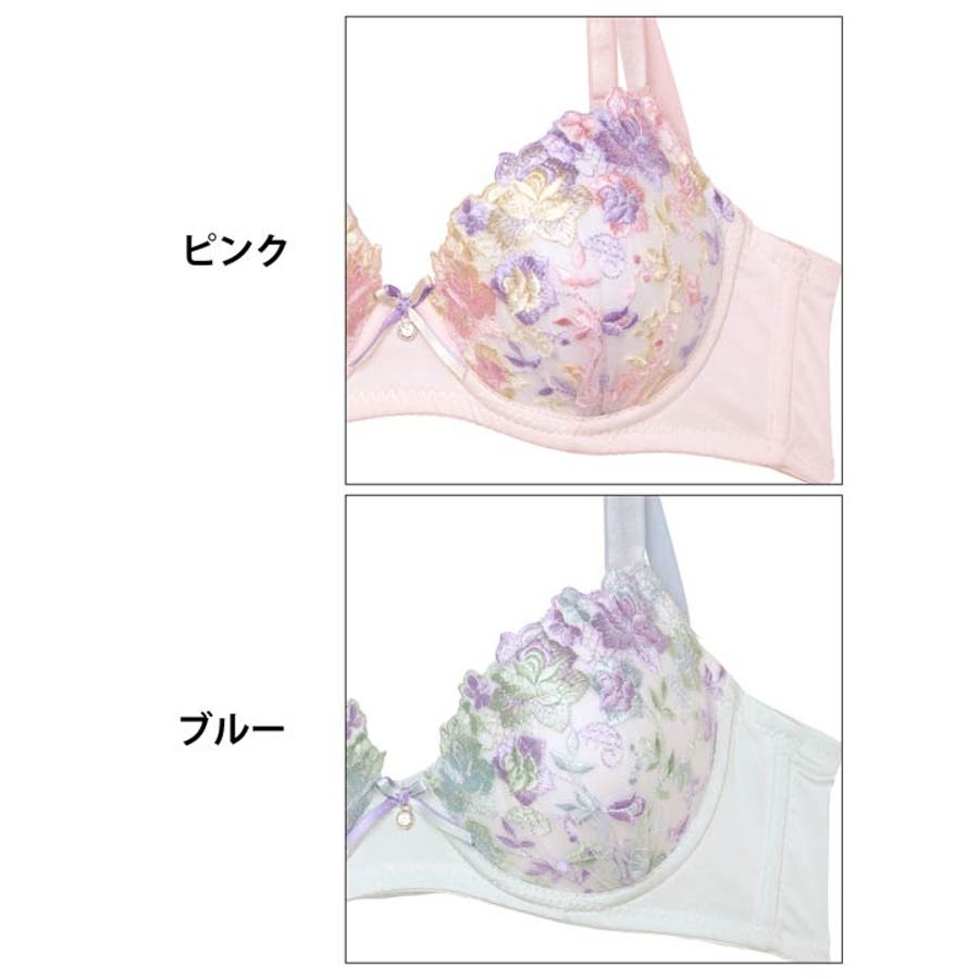 可愛らしいカラフルなお花の刺繍が胸元を明るく飾ってくれるフェミニンなランジェリー。