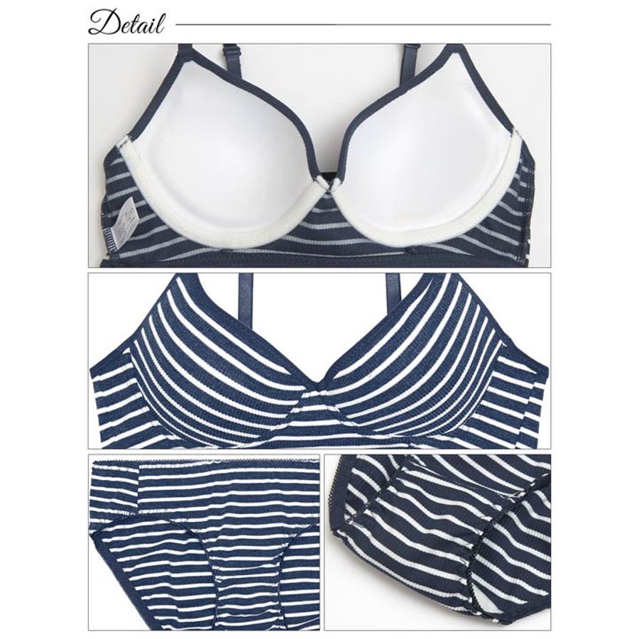 [ノンワイヤー] カジュアルマリンボーダーブラジャー&フルバックショーツ