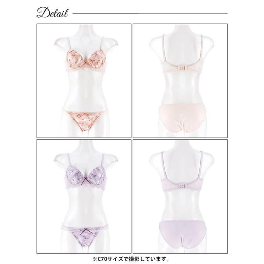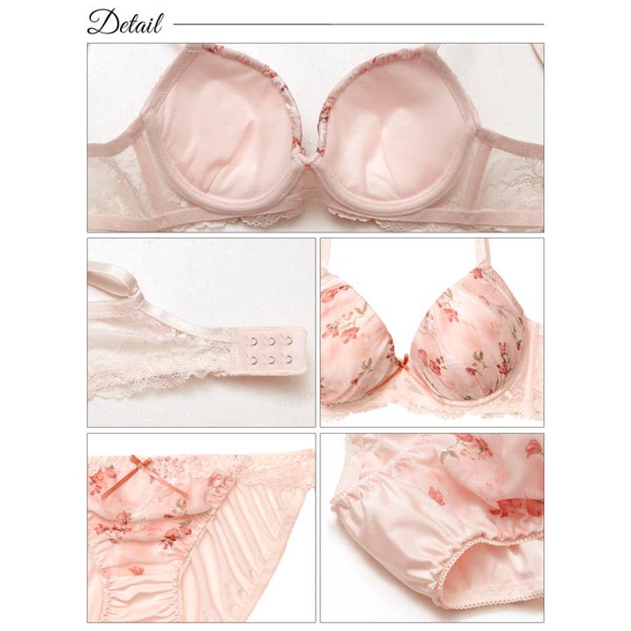 淡いフラワープリントと繊細なレースが甘く女の子らしい雰囲気を感じさせるランジェリー。