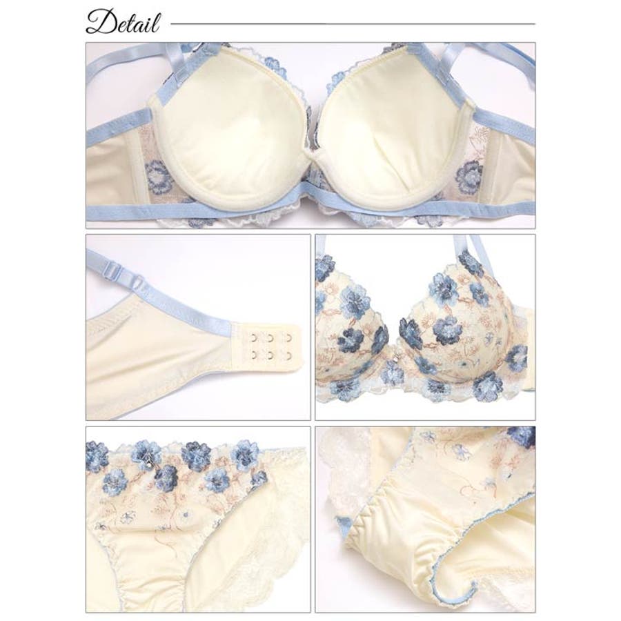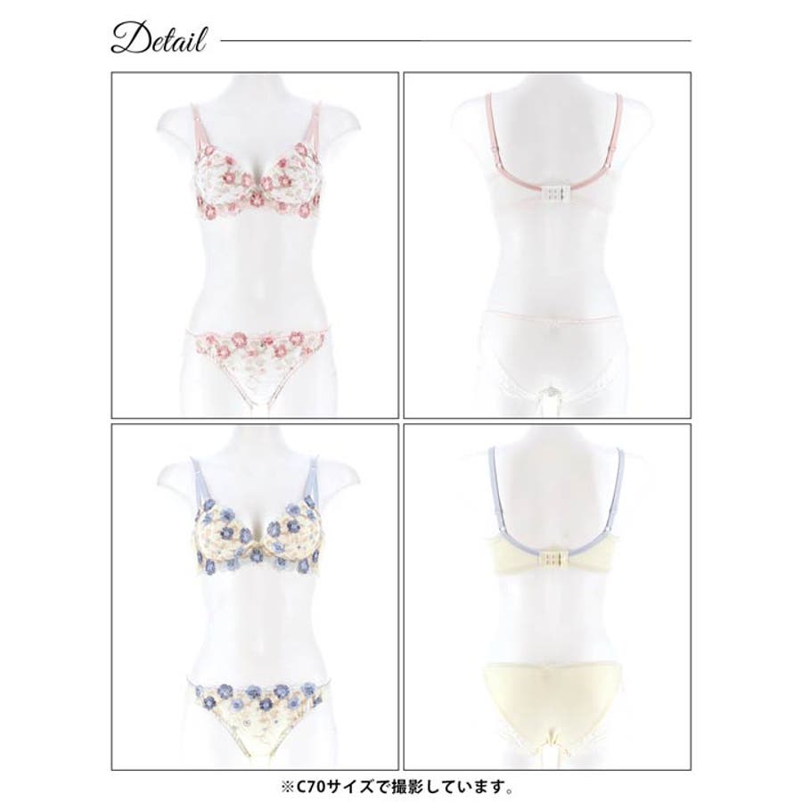 上品な色合いでまとめたフラワー刺繍が大人可愛いムードを演出するランジェリー。