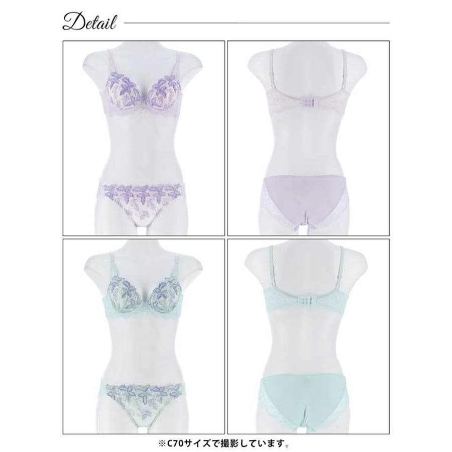 優しげなパステルカラーと上品さまとうリーフ刺繍が美しいランジェリー。