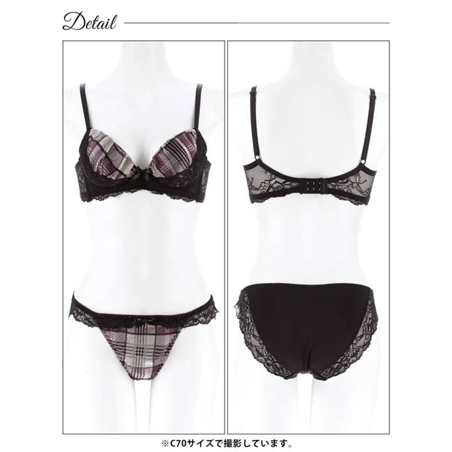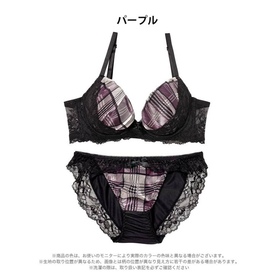 ノーブルチェックレーシィ脇高ブラジャー&フルバックショーツ