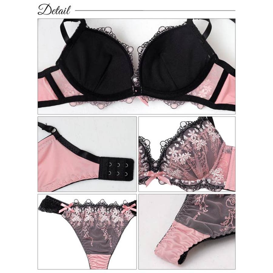 色気を引き立たせるブラック生地から浮かび上がるような花々の刺?が美しいランジェリー。