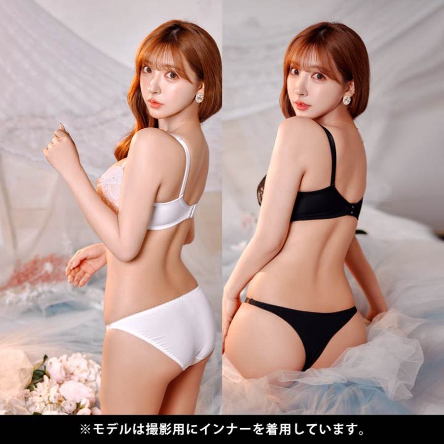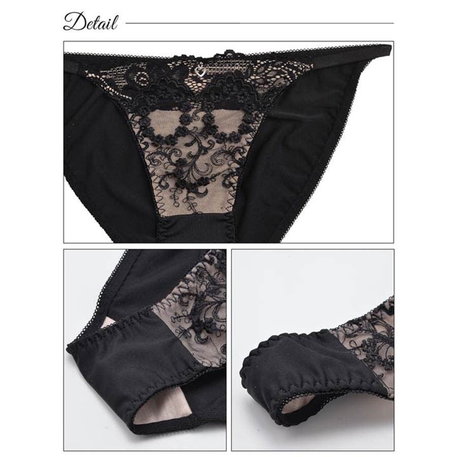繊細な透け感のあるゴシックな雰囲気漂うレースを全面に重ねたランジェリー。谷間をしっかりキープ出来る脇高仕様と、気分にあわせてフルバック&Tバックを使い分けできちゃうお得な3点セットです♪