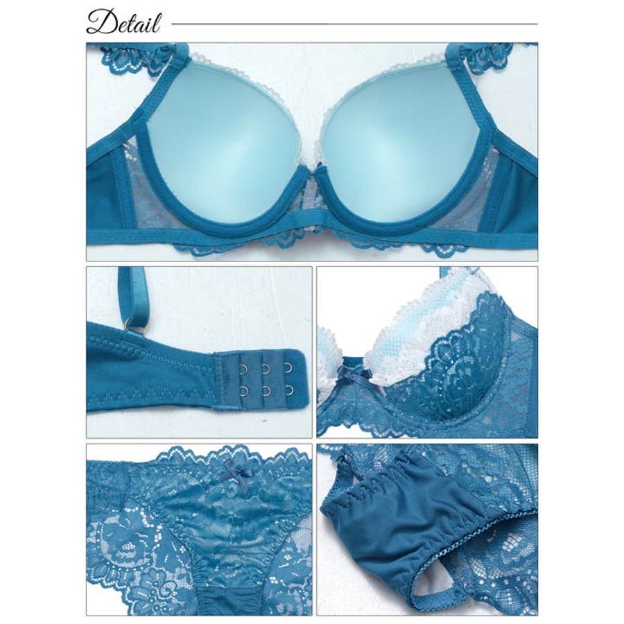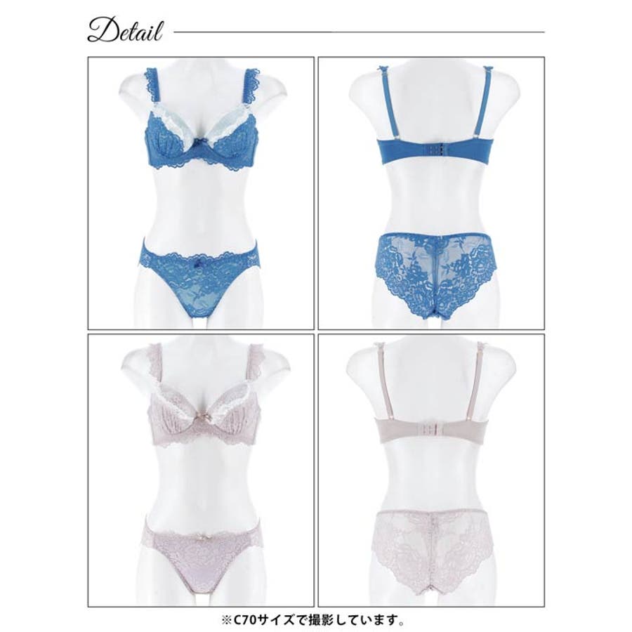 フェミニンプティレースブラジャー&バック透けフルバックショーツ