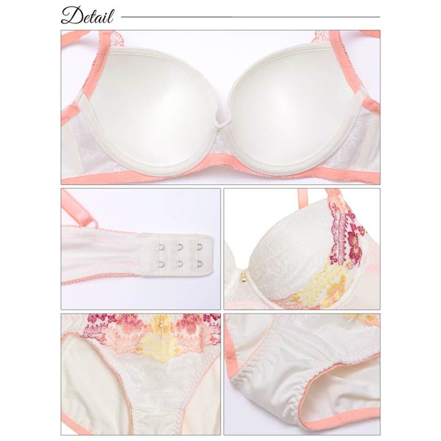 アジアンテイストなフラワー柄が印象的なランジェリー。3色グラデーションの刺繍をカップサイドから肩紐まであしらいオシャレ感アップ◎ 場面を問わず使いやすいフルバック仕様でデイリー使いにもおすすめです♪