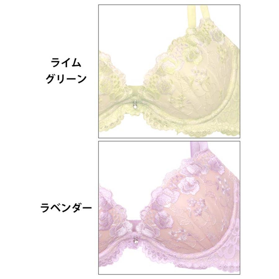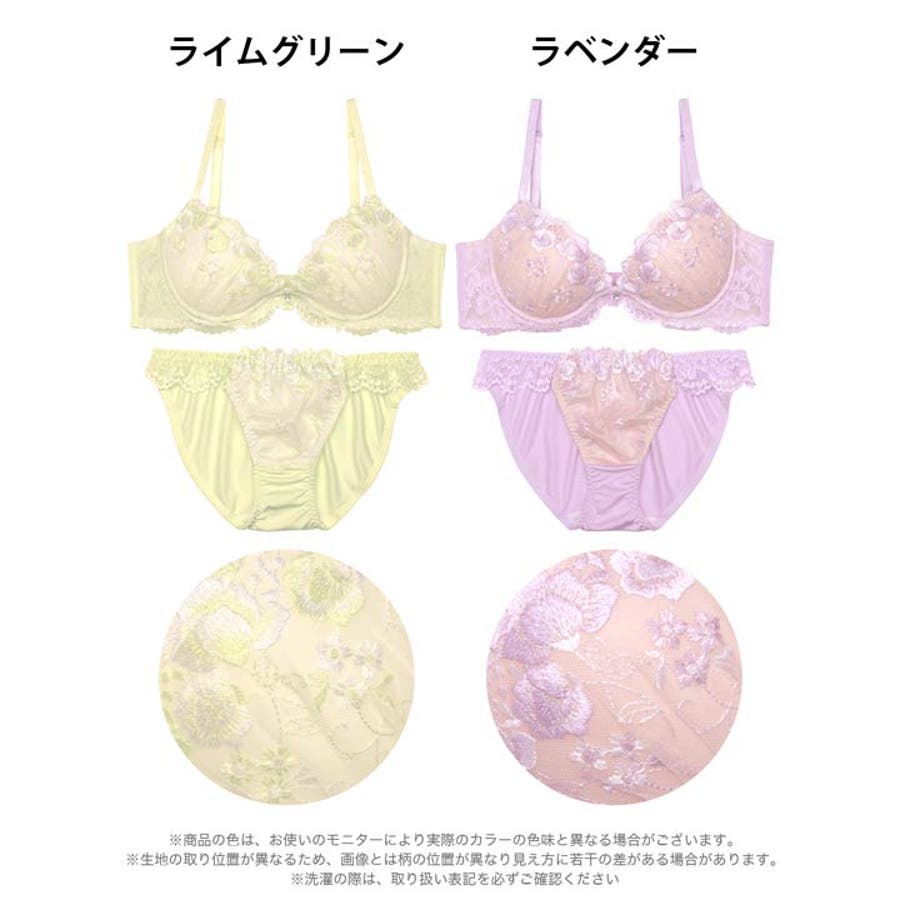 淡い色合いの花柄刺繍をたっぷりあしらった上品で女性らしさ漂うランジェリー。