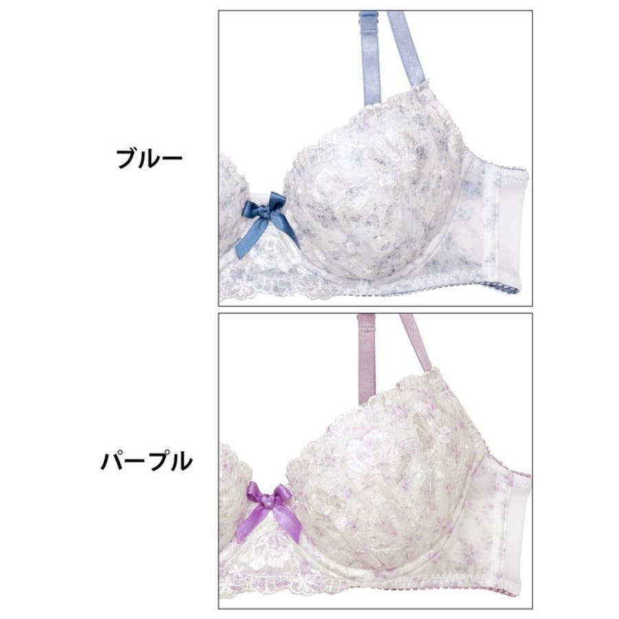 くすみカラーの水彩フラワーにローズ刺繍を重ねた清楚感溢れるランジェリー。