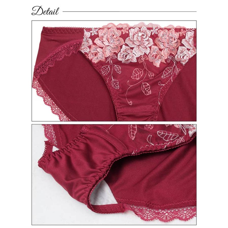 立体感のある大輪ローズ刺繍が胸元をラグジュアリーに演出するランジェリー。中心にはラインストーンチャームがあしらわれ上品なきらめきをプラス♪ショーツの脚口は女性らしいレース仕様で、快適な履き心地とラインのひびきにくさを兼ね備えています◎