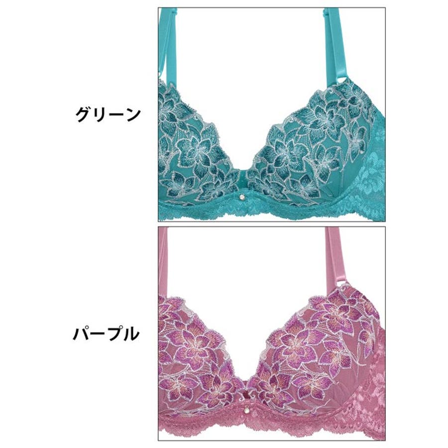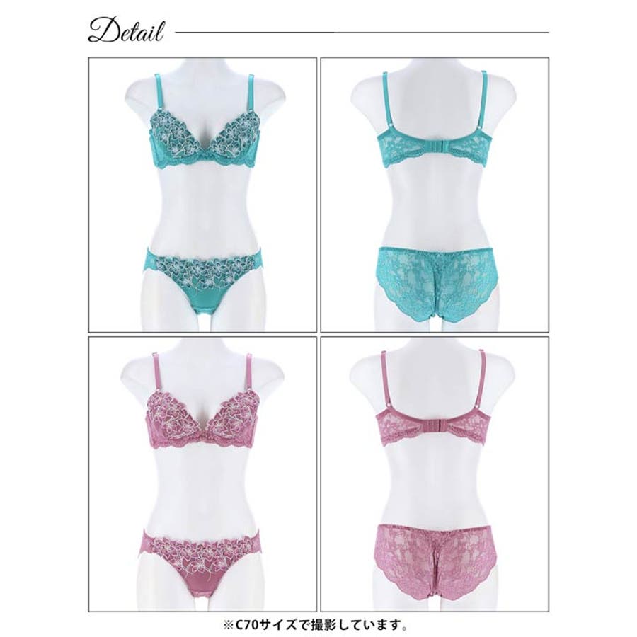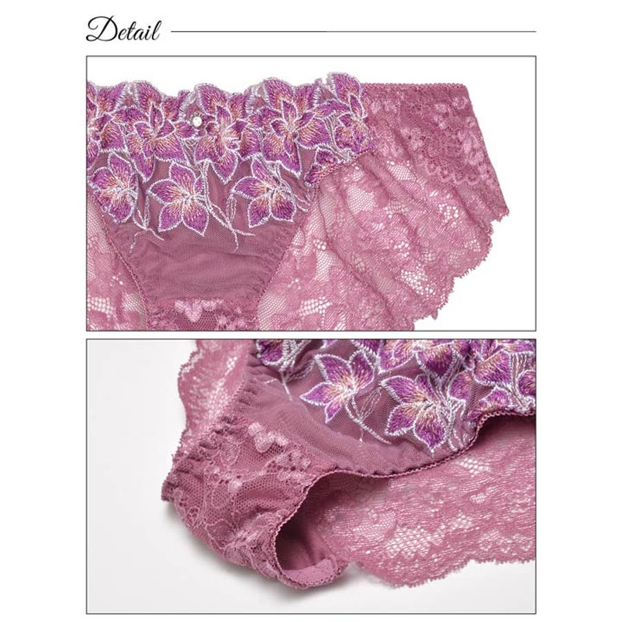 大人っぽいカラーリングのレースに華やかなフラワー刺繍が浮かび上がるランジェリー。煌めくシルバーのチャームがアクセント♪ショーツはお洋服に響きにくいバックレース仕様で後ろ姿をセクシーに見せてくれます◎