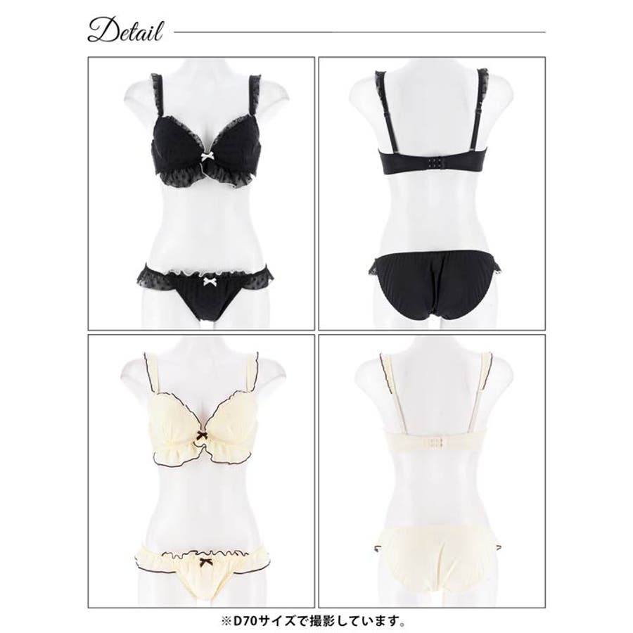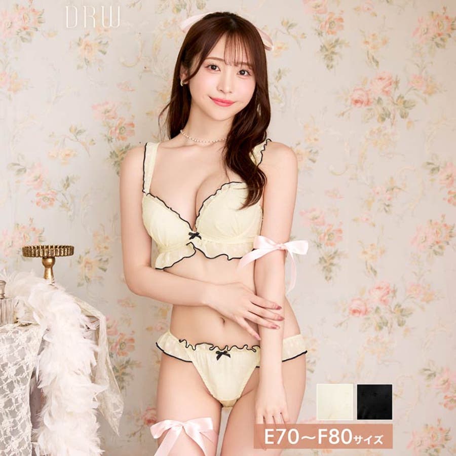 アンダー部分やショーツサイドに可愛らしいフリルをたっぷり重ね甘い雰囲気を演出します◎