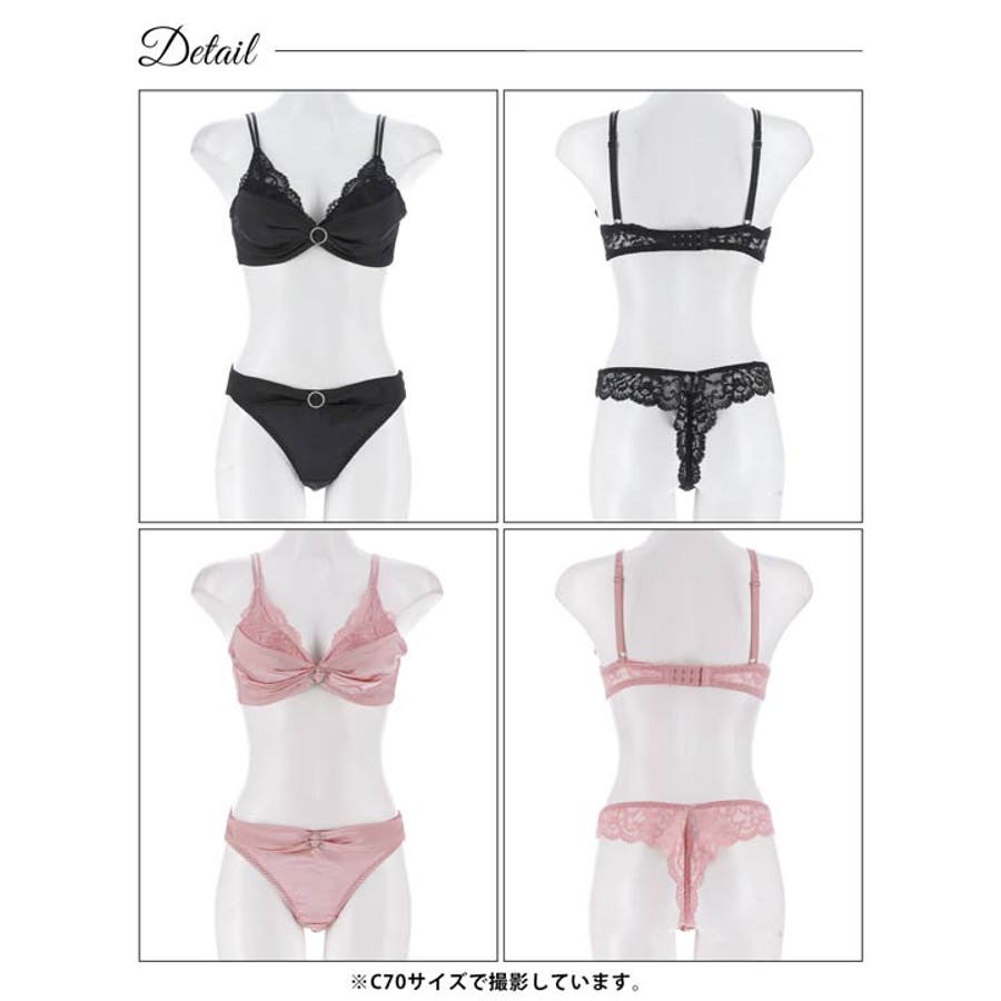 リボンリングビジューレースブラジャー&バック透けTバックショーツ