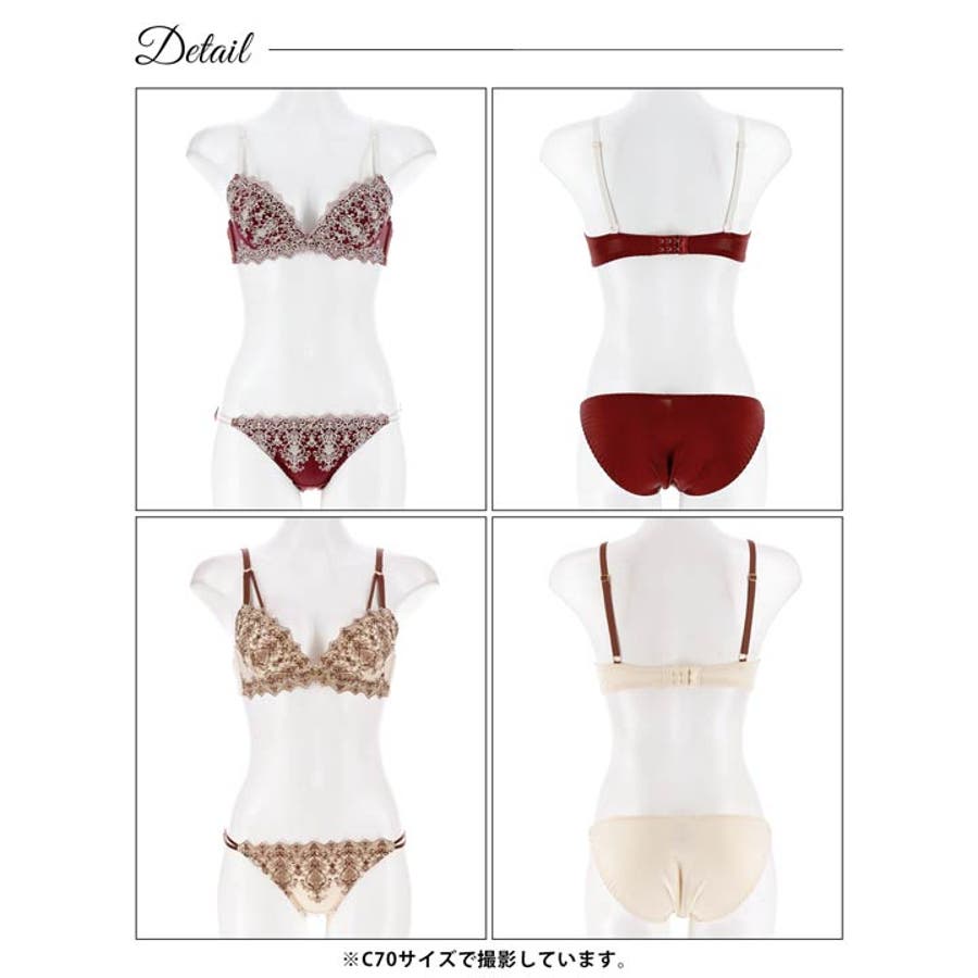 大人っぽいディープカラーに高級感漂うダマスクモチーフをあしらったランジェリー。