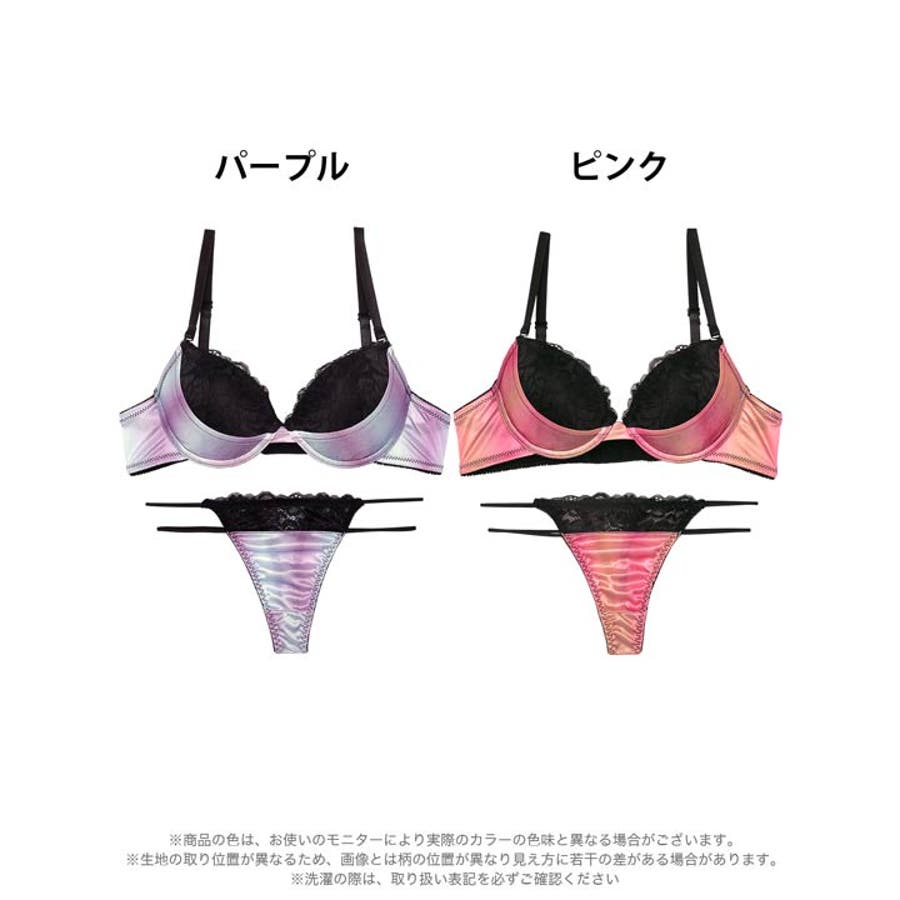マーブルグラデーションレースブラジャー&Tバックショーツ