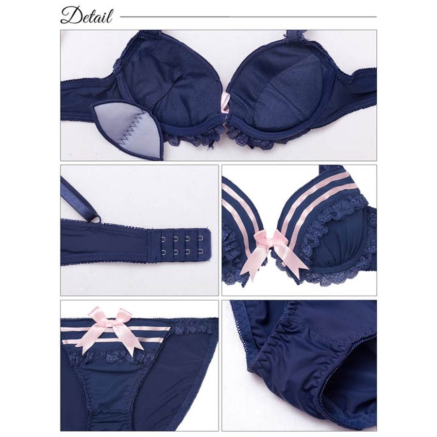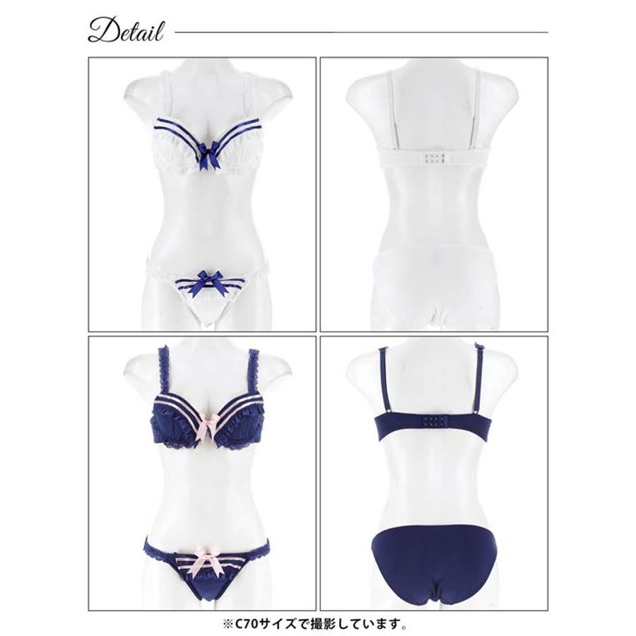 艶感のあるリボンテープでマリンセーラー風に仕上げたキュートなランジェリー。