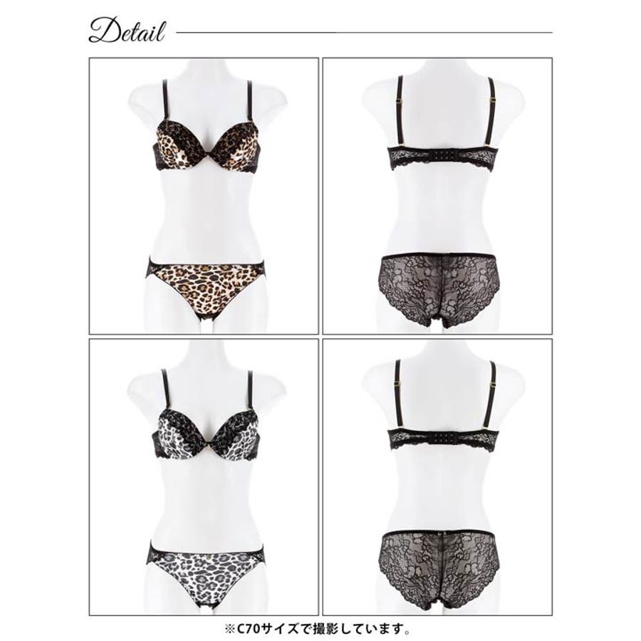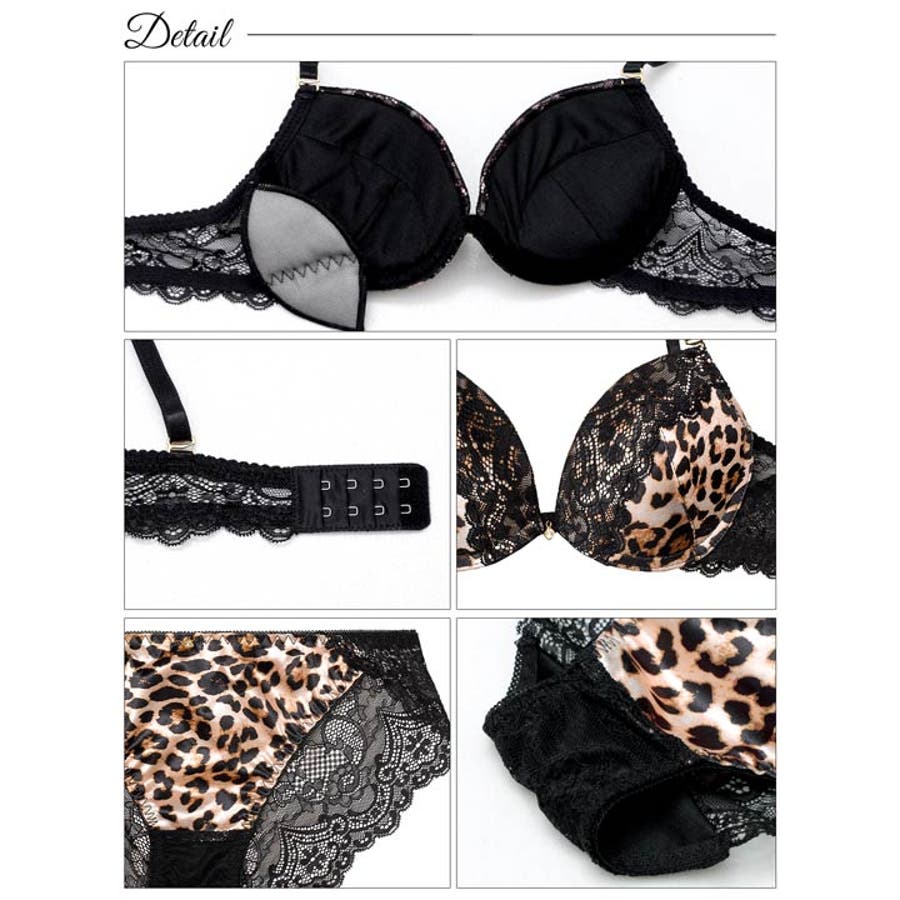 サテンレオパードレースブラジャー&バック透けフルバックショーツ