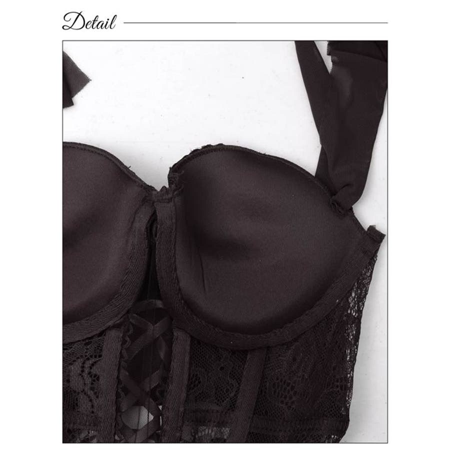 【レッド】レースアップリボンビスチェブラジャー&バック透けTバックショーツ