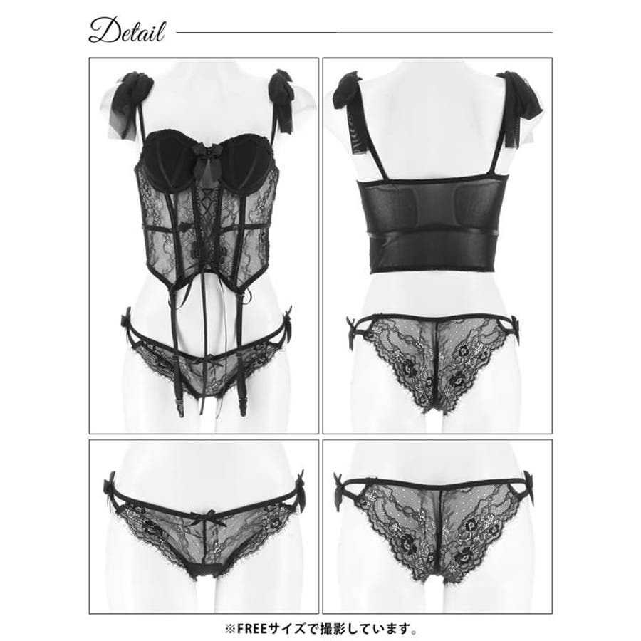 金属なし、ショーツセット、ガーターベルト(調節可)、胸パッド付