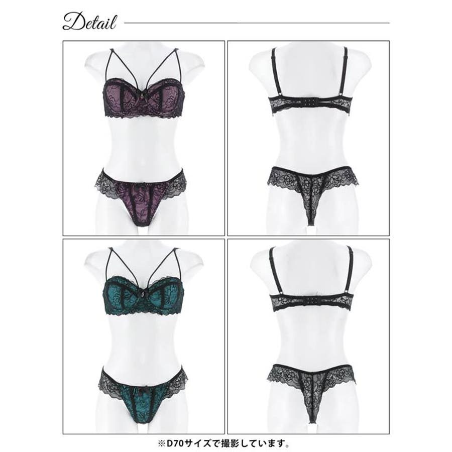 透け感のある繊細なブラックレースやバストを強調するコードデザインがセクシーさ満載のランジェリー。