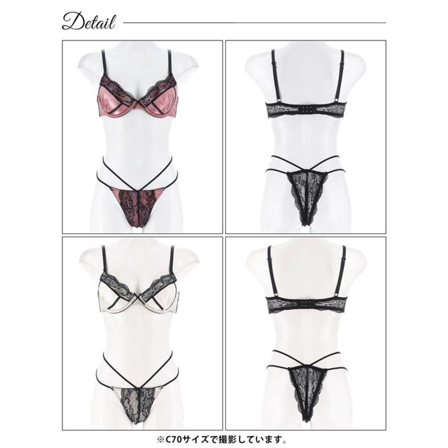 ブリリアントサテンレーシィブラジャー&バック透けTバックショーツ