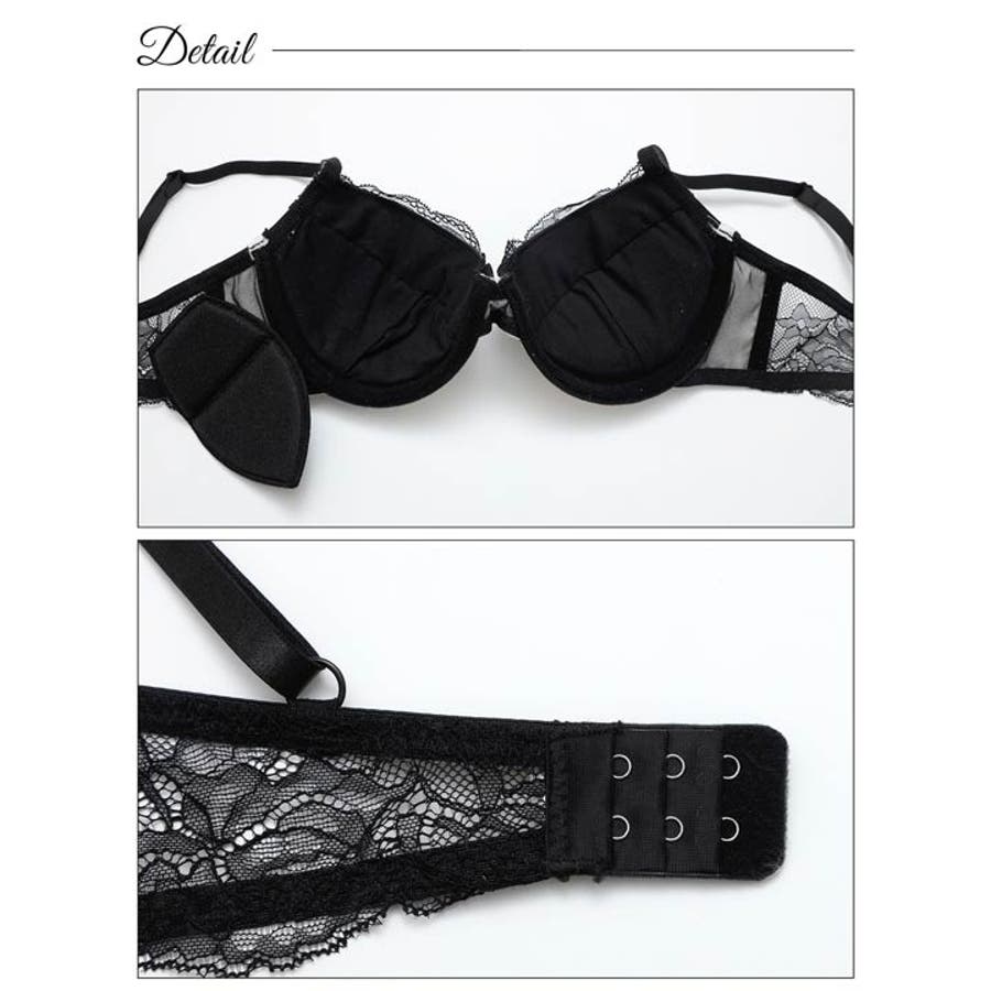 カップ部分のラインデザインや中央のリボン装飾でアクセントを効かせたセクシーな1着。