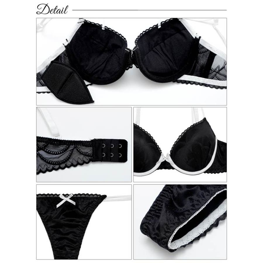 [EFサイズ] バイカラーシアースカラップブラジャー&バック透けTバックショーツ