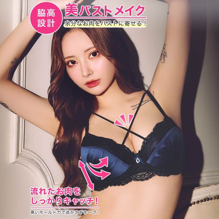 デコルテを華やかに演出する華奢なクロスラインは谷間へ自然と視線を集めてくれる1着。