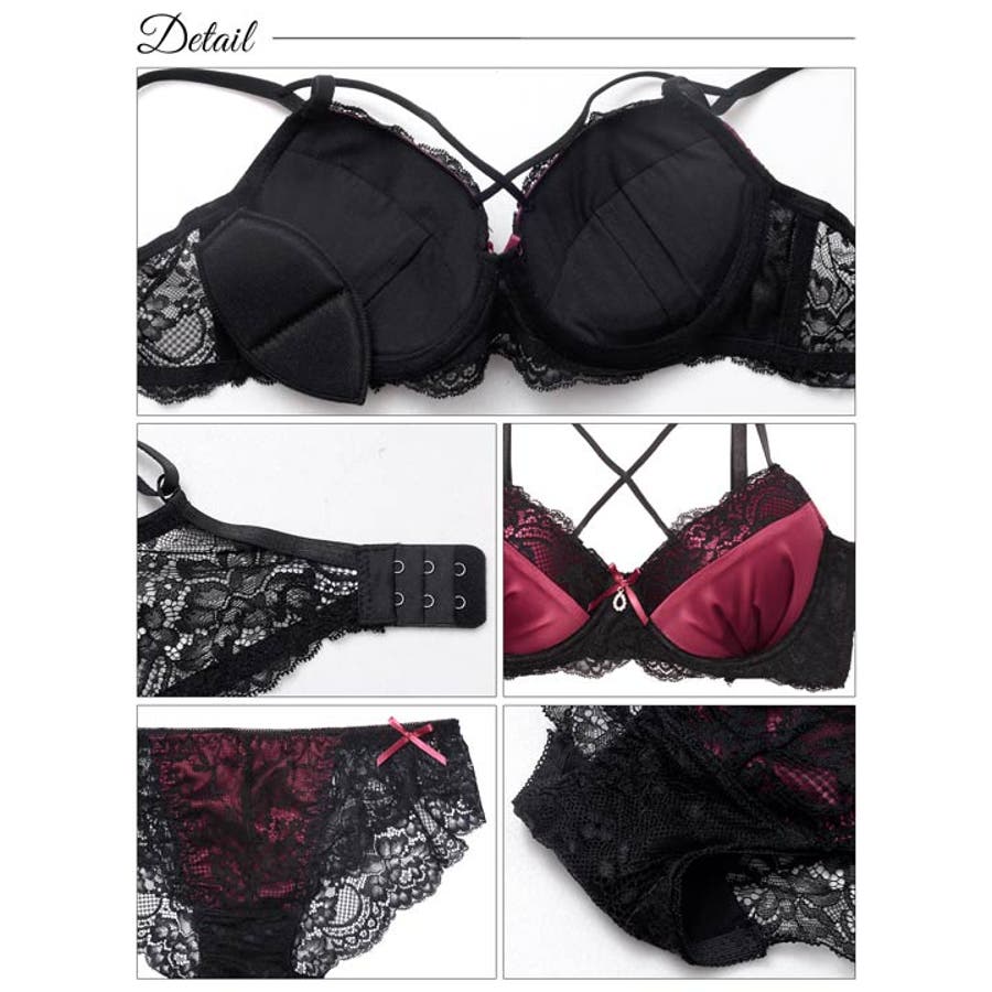 艶やかなディープサテン生地に大人セクシーなブラックレースを重ねたランジェリー。