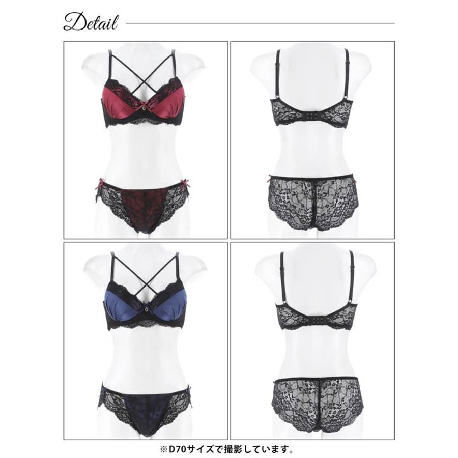【ワインレッド】 ディープサテンリボンコードブラジャー&バック透けフルバックショーツ