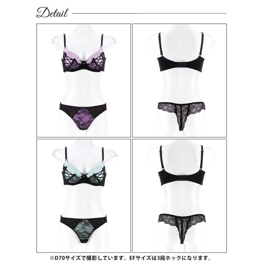[EFサイズ] アリュールレースアップ脇高ブラジャー&バック透けTバックショーツ