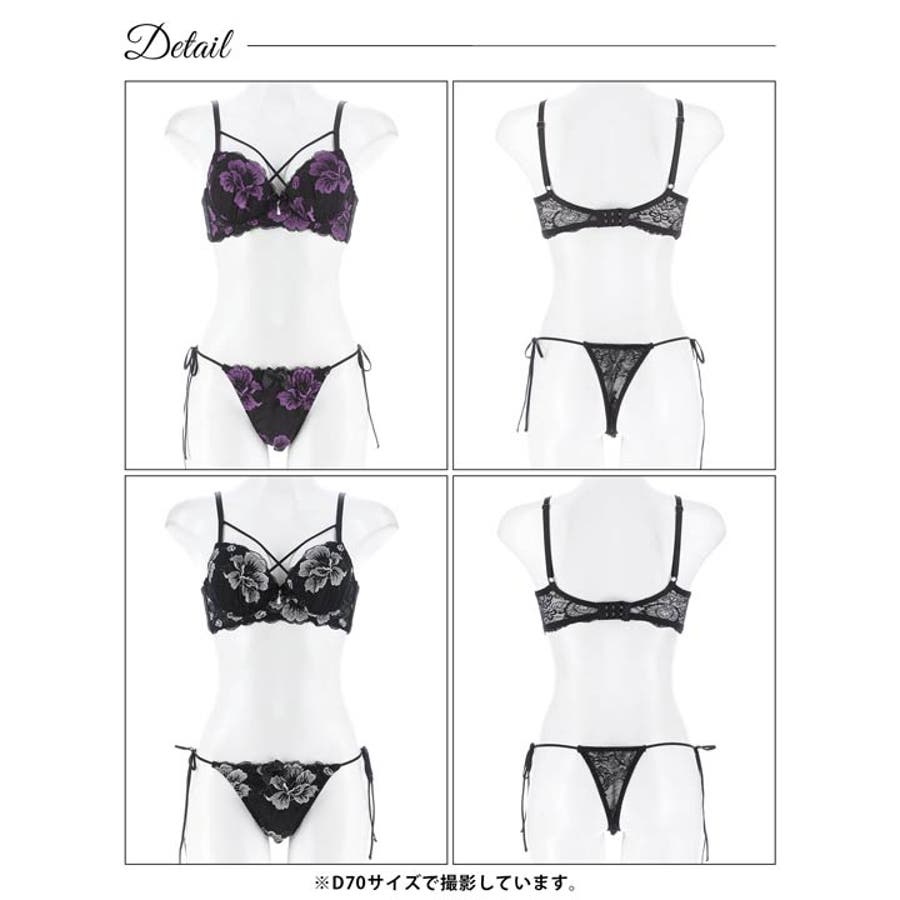 ブラックのレースに大輪の花刺繍が美しく映えるラグジュアリーなランジェリー。