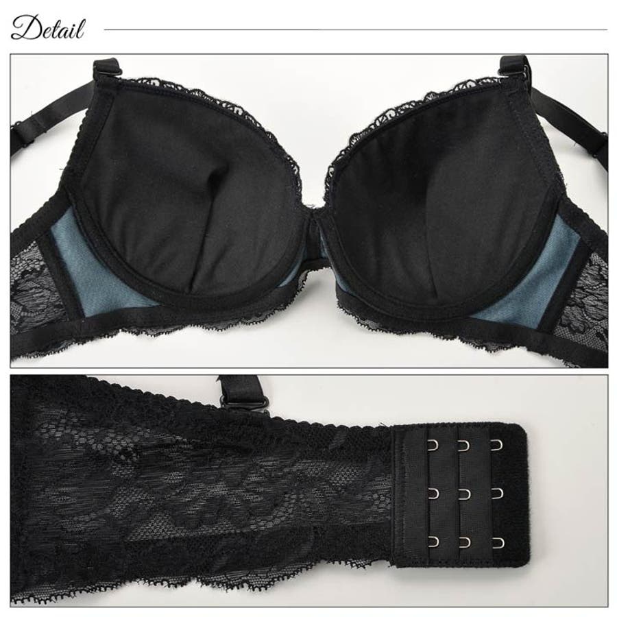ブラックのフラワー刺繍が大人セクシーなデザイン。繊細な刺繍はプチプラに見えない高級感のあるランジェリーです。ブラベルトやショーツのバックサイドはさりげなく素肌が見えるシアーレース仕立て♪
