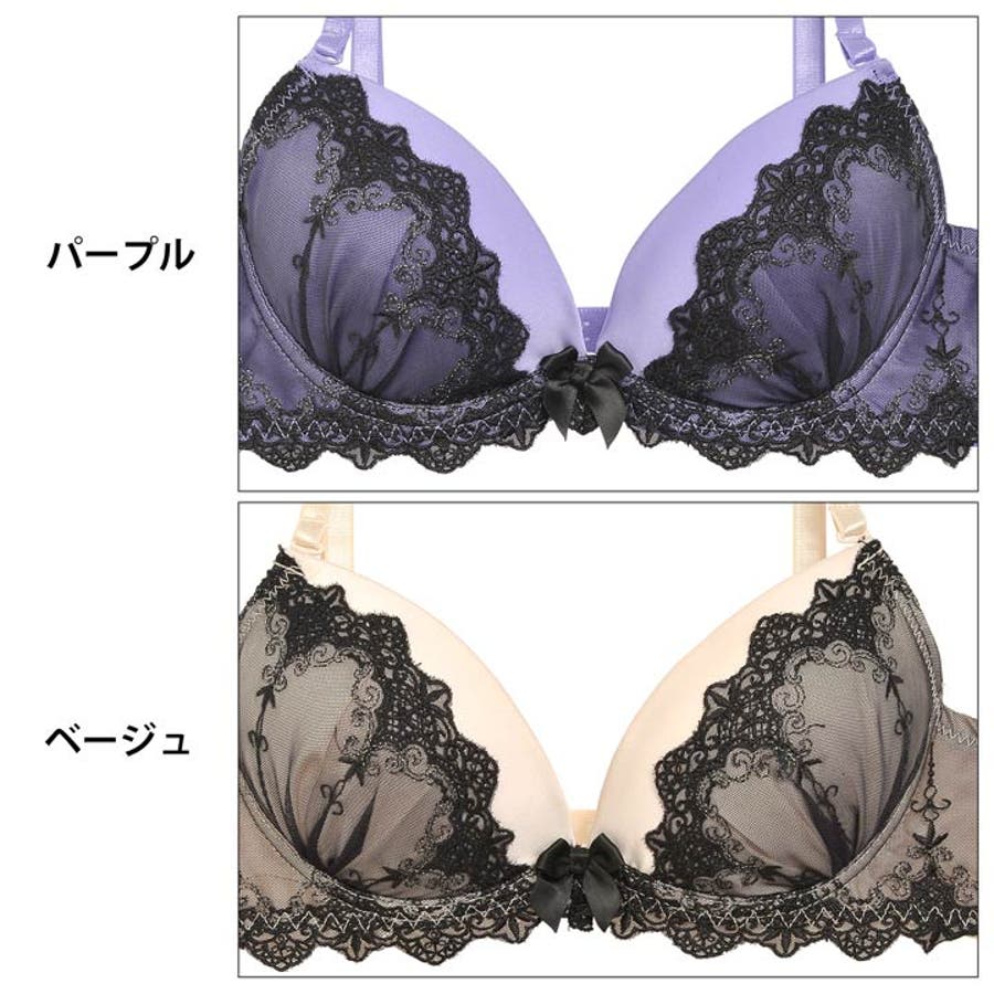 ブラックのチュールが素肌に色っぽく映えるランジェリー。カラーはヌーディーな「ベージュ」とディープな「パープル」の2色展開♪大人の魅力が溢れる一着です。
