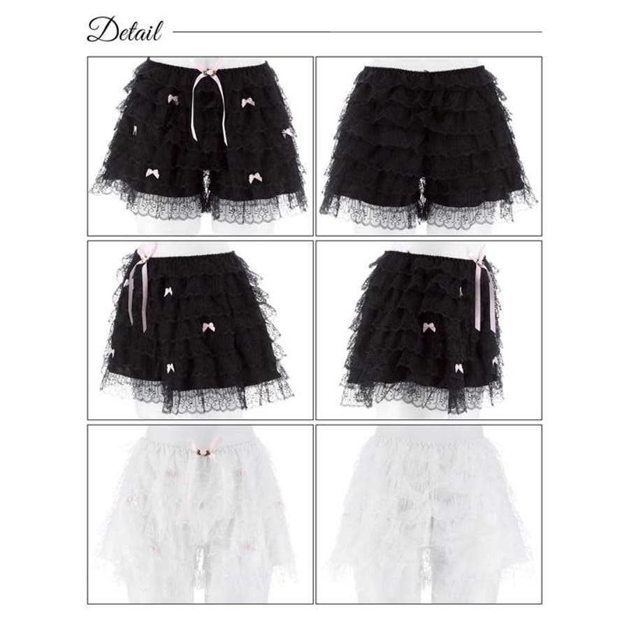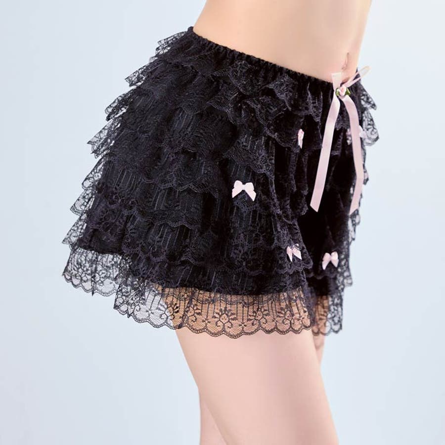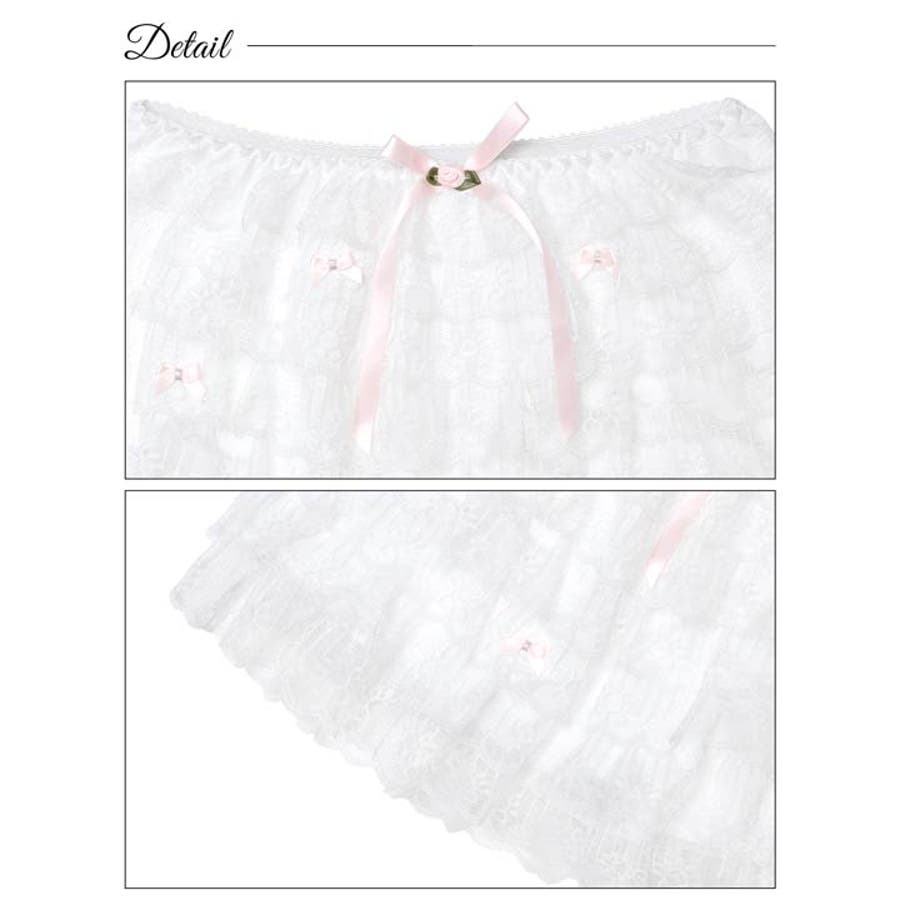 たっぷりのフリルレースで華やかに仕上げたキュートなデザインのペチパンツ。